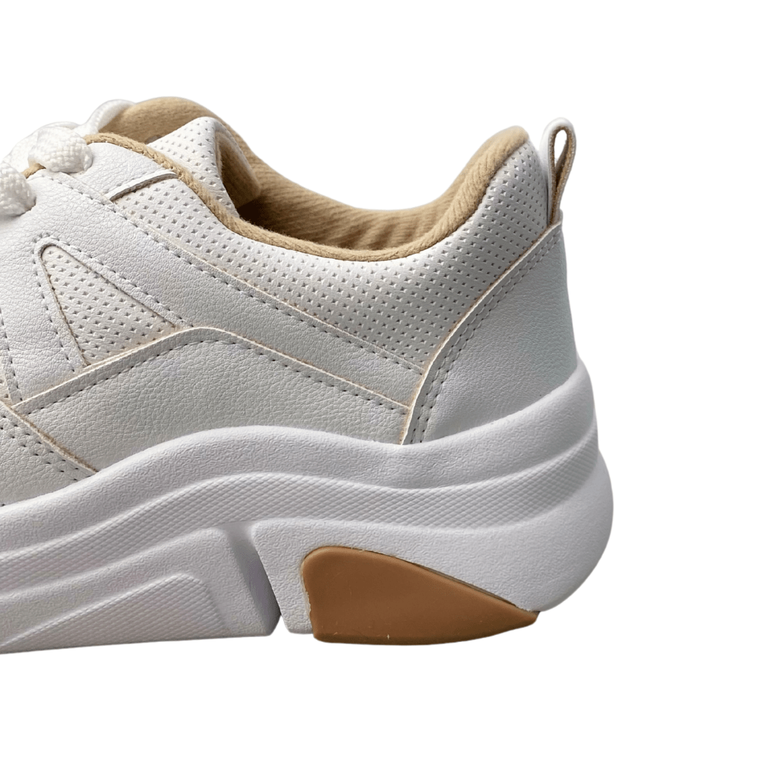 Detalhes: Recortes modernos e aplicação em bege no solado para um toque de estilo