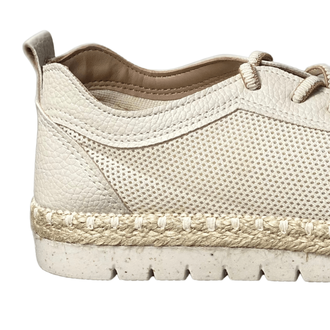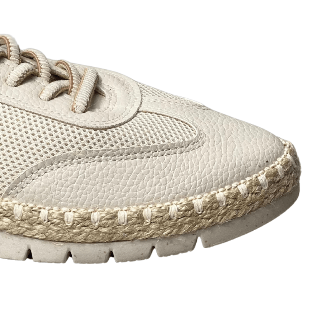 Design Único: O detalhe em corda trançada na entressola traz um ar artesanal e sofisticado, elevando o status do tênis casual.
