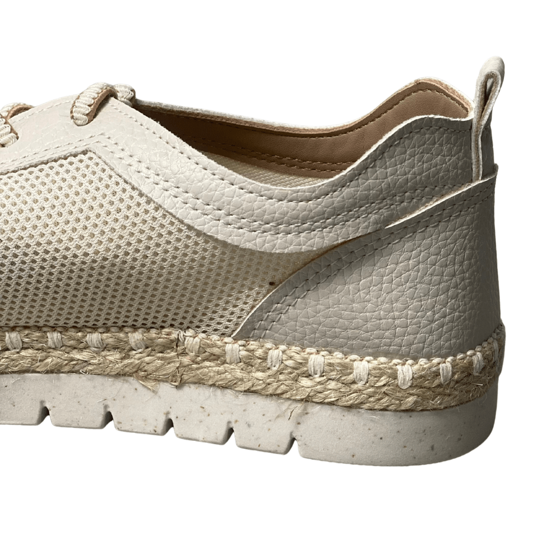Diferencial: Entressola decorada com corda trançada e costuras aparentes de alta precisão.