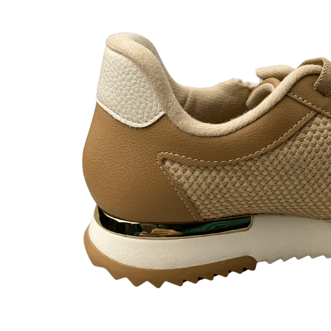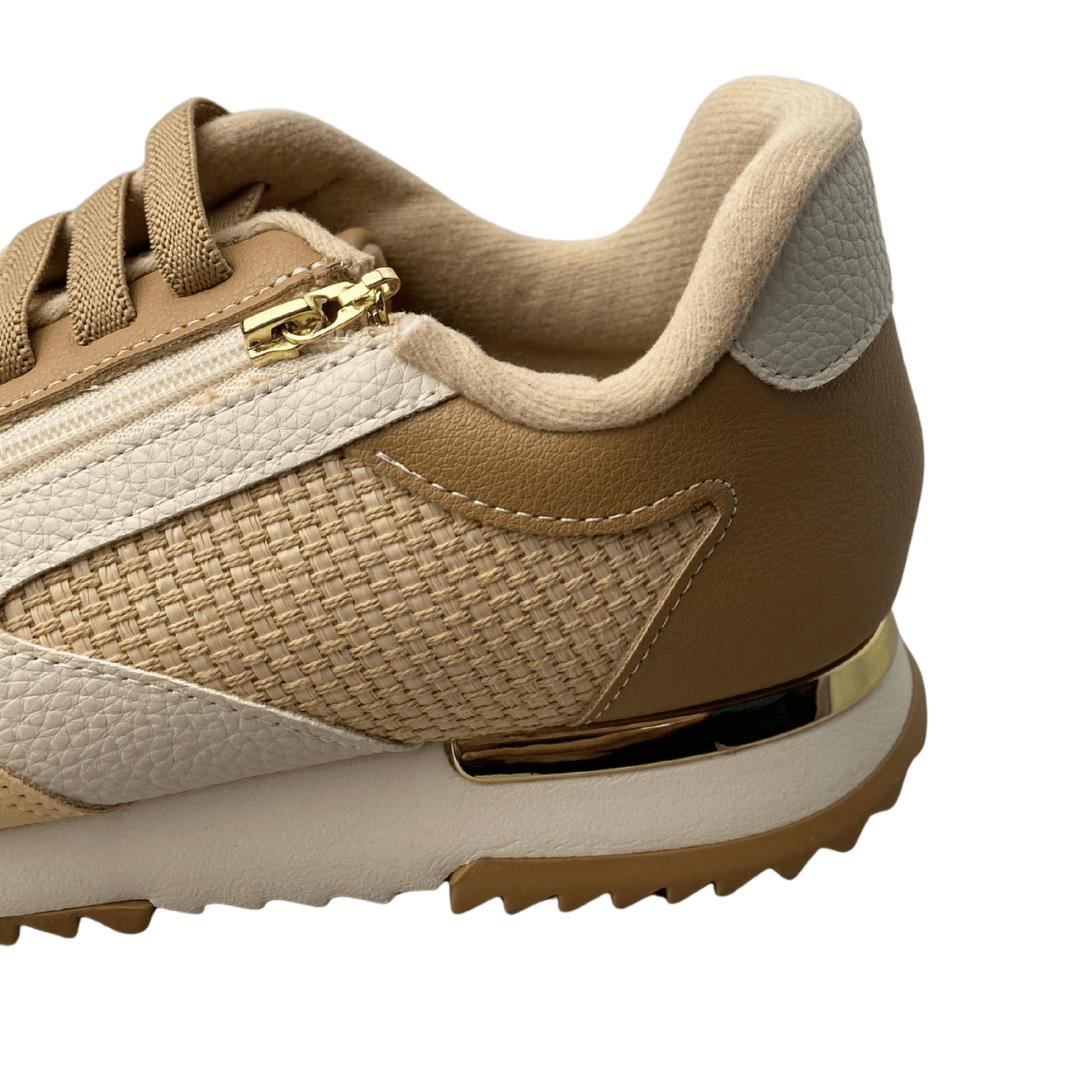 Detalhes: Acabamento dourado no calcanhar para um toque sofisticado