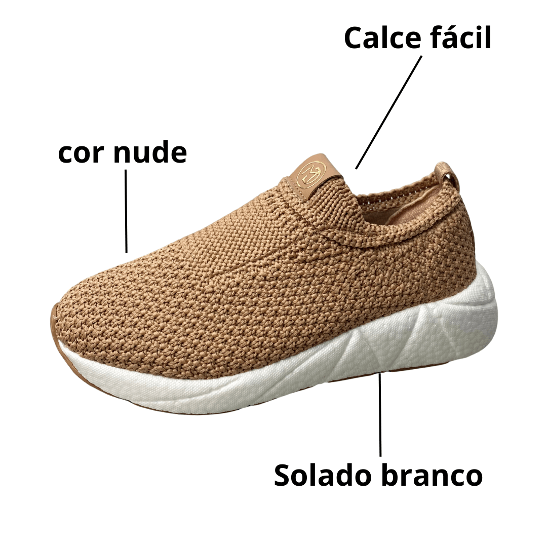 Praticidade no dia a dia: modelo calce fácil, sem cadarços, para vestir rapidamente.