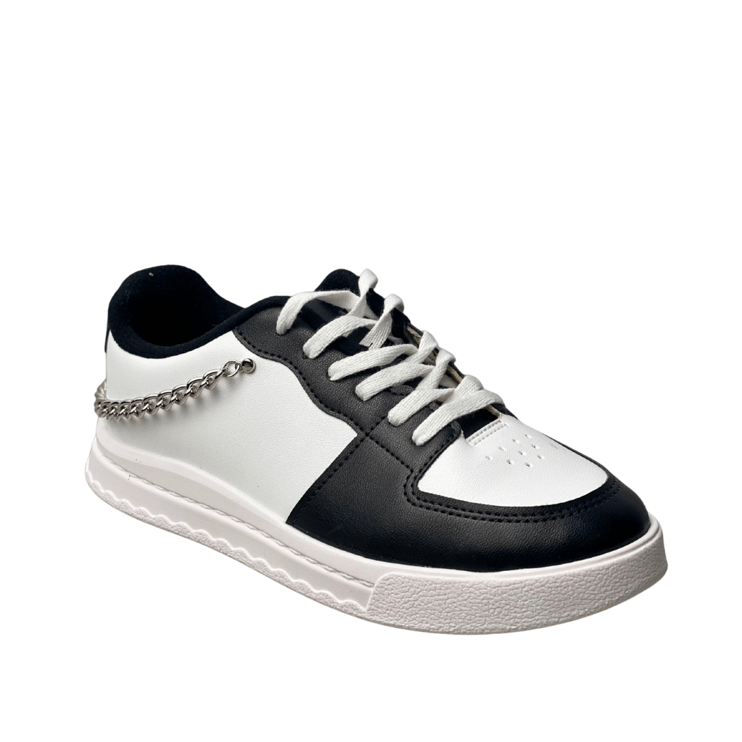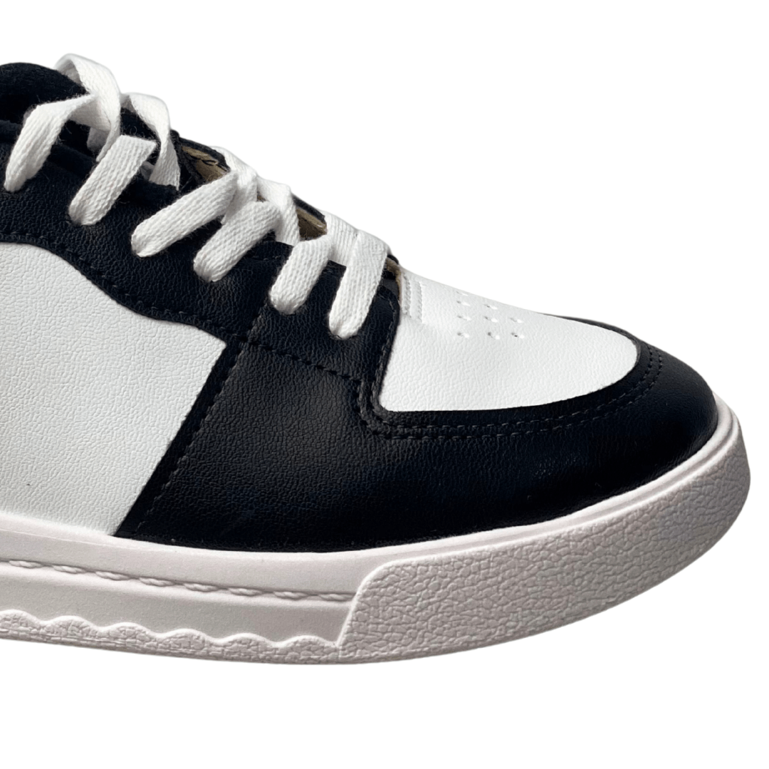 Design: Tênis casual de cano baixo (low-top), com design básico e atemporal.