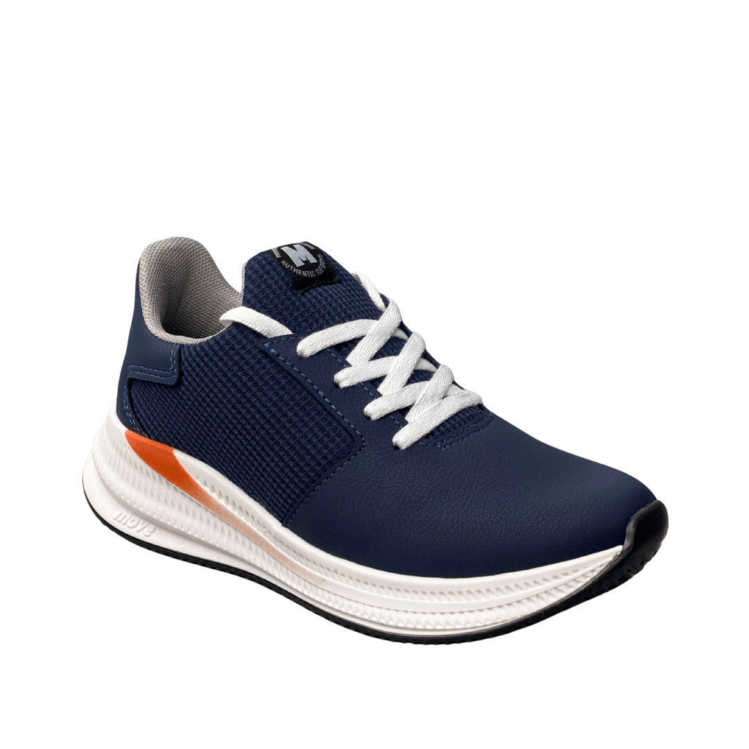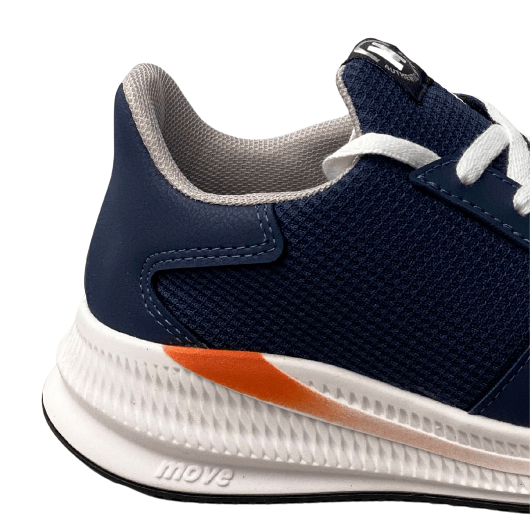 Estilo Casual Urbano: A cor Marinho (azul-escuro) é clássica e versátil, e os detalhes em Laranja Neon no solado adicionam um toque moderno e fashion.