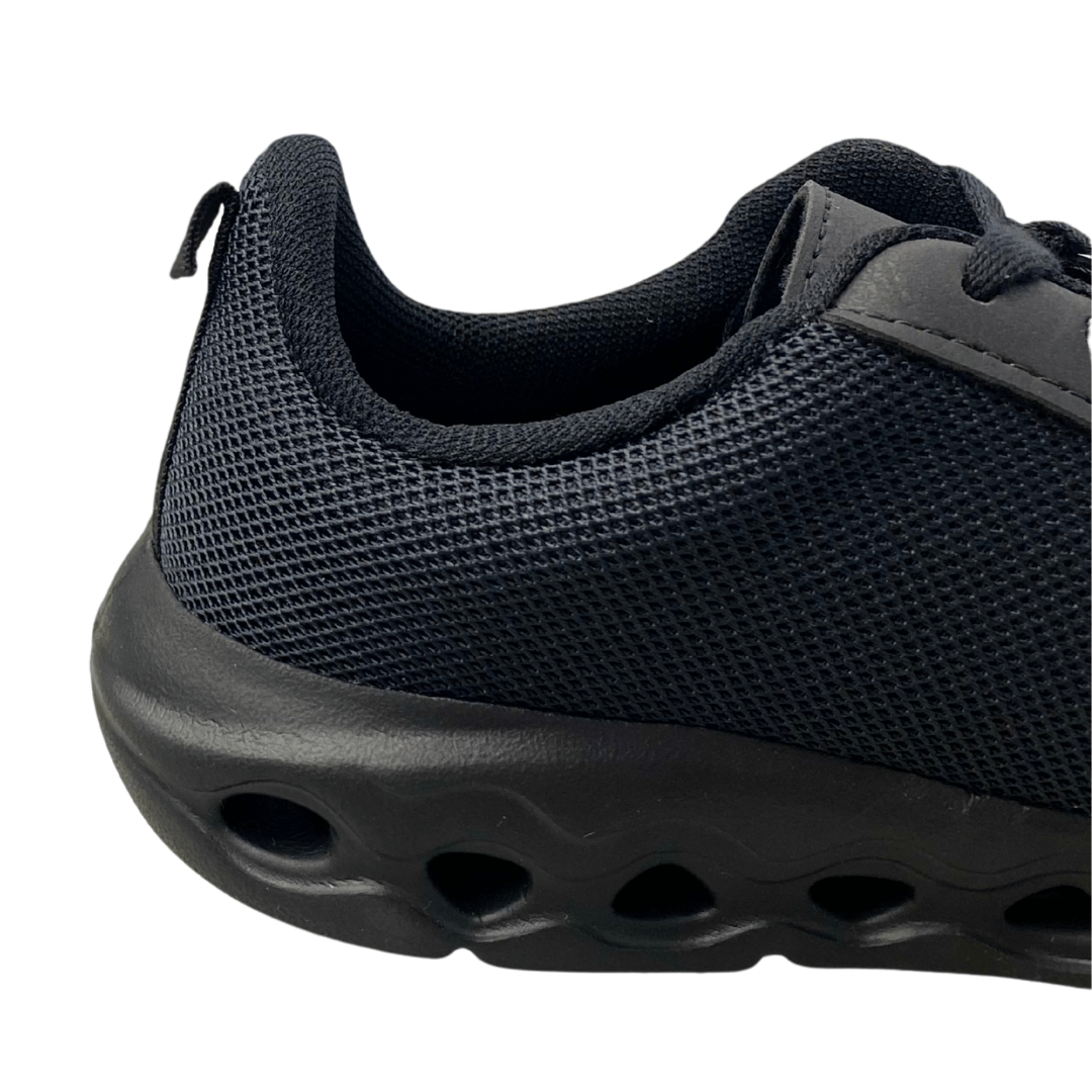 Solado: Borracha antiderrapante com design vazado para leveza e amortecimento.