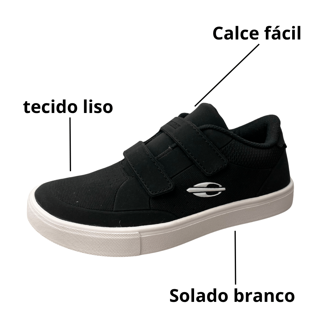 Fácil de calçar, dispensando o uso de cadarços, ideal para crianças que gostam de autonomia.