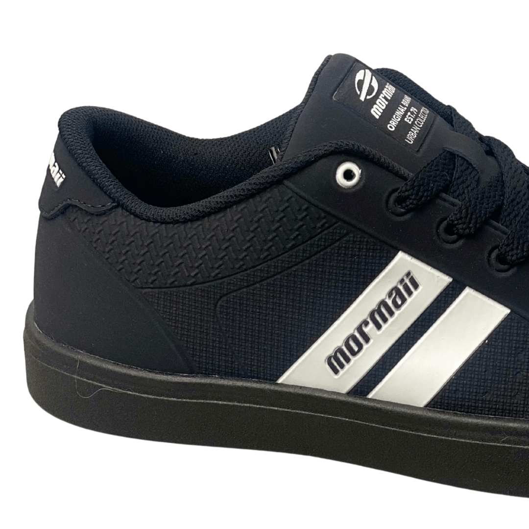 Estilo Marcante: As faixas laterais brancas com a assinatura Mormaii conferem um visual dinâmico e autêntico.