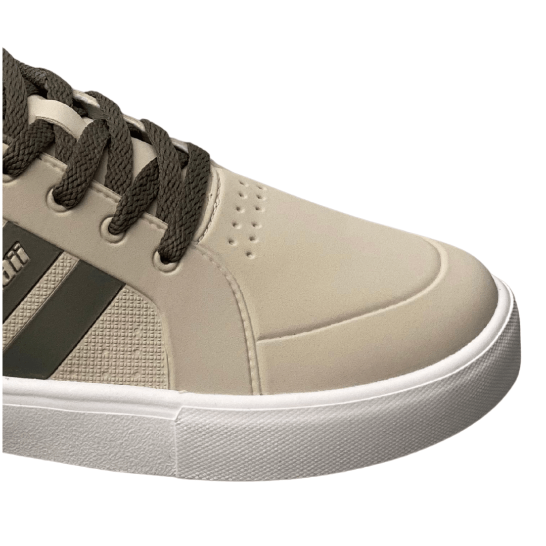Versatilidade no Visual: A cor bege com detalhes em marrom facilita a combinação com jeans, bermudas e calças de sarja.