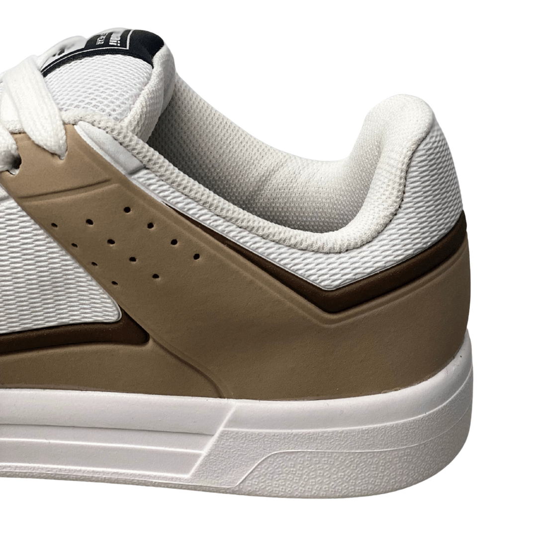 Estilo Versátil: A combinação de branco com tons de areia permite que o tênis combine facilmente com diversas cores de roupas.