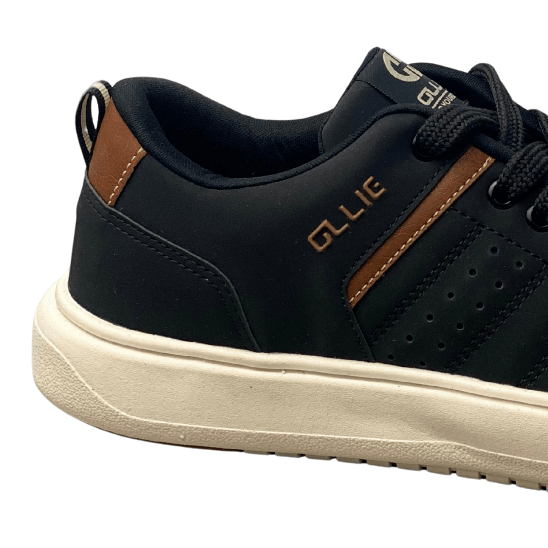 Lingueta: A lingueta tem um acabamento superior na cor preta com o logo da marca Ollie em destaque.
