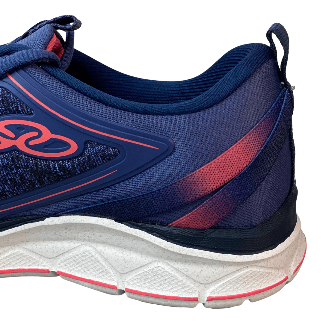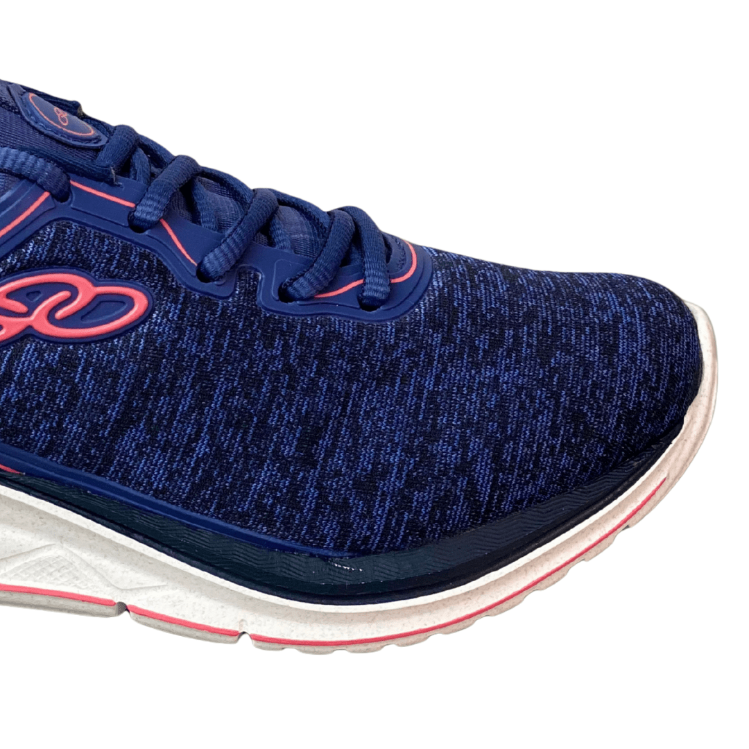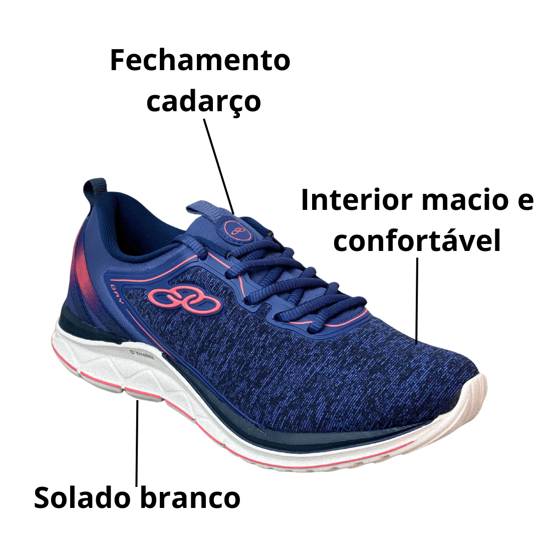 Detalhes: Logo Olympikus em relevo na lateral e puxador traseiro para facilitar o calce.