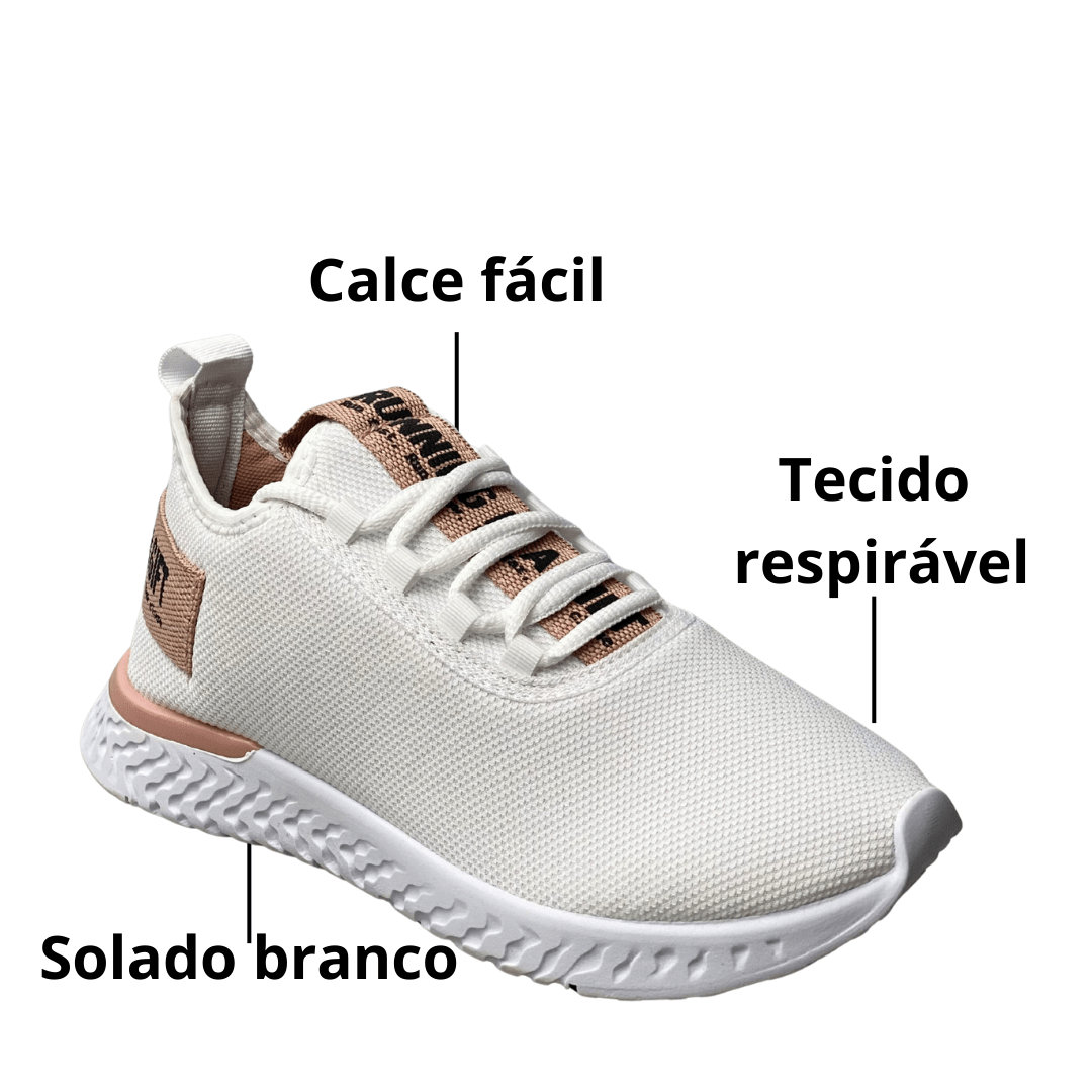 Praticidade Calce Fácil: Esqueça os cadarços demorados! Seu design slip-on (ou com grande abertura) permite calçar o tênis em segundos, ideal para a correria do dia a dia.