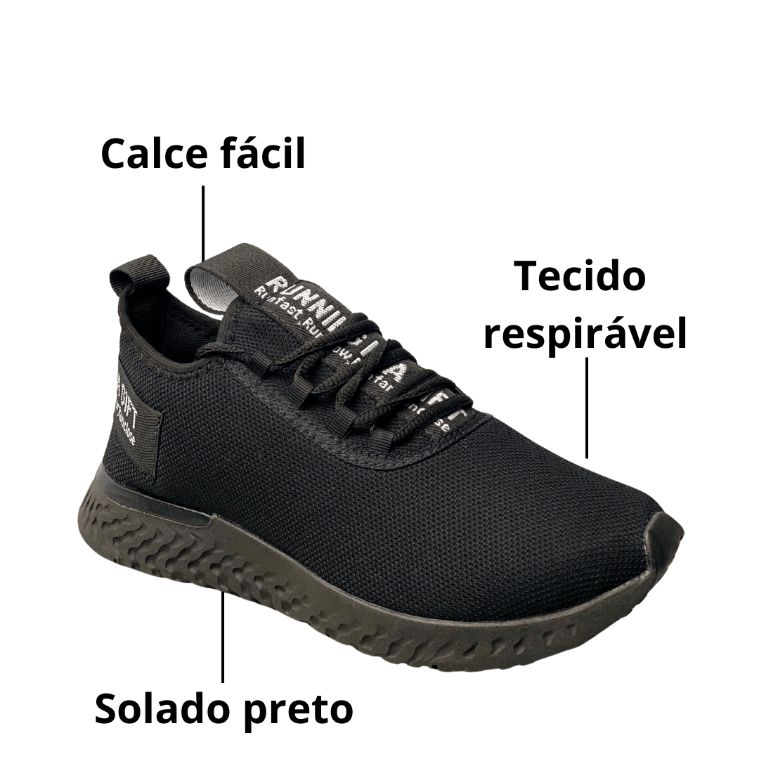 Tênis Masculino Preto Calce Fácil