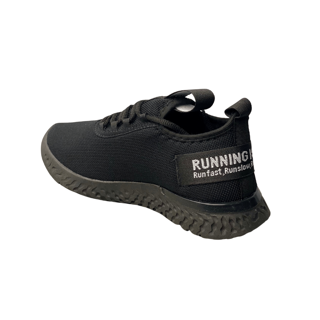 Detalhe de Destaque: Alças na lingueta e no calcanhar com a inscrição RUNNING, reforçando o estilo esportivo.