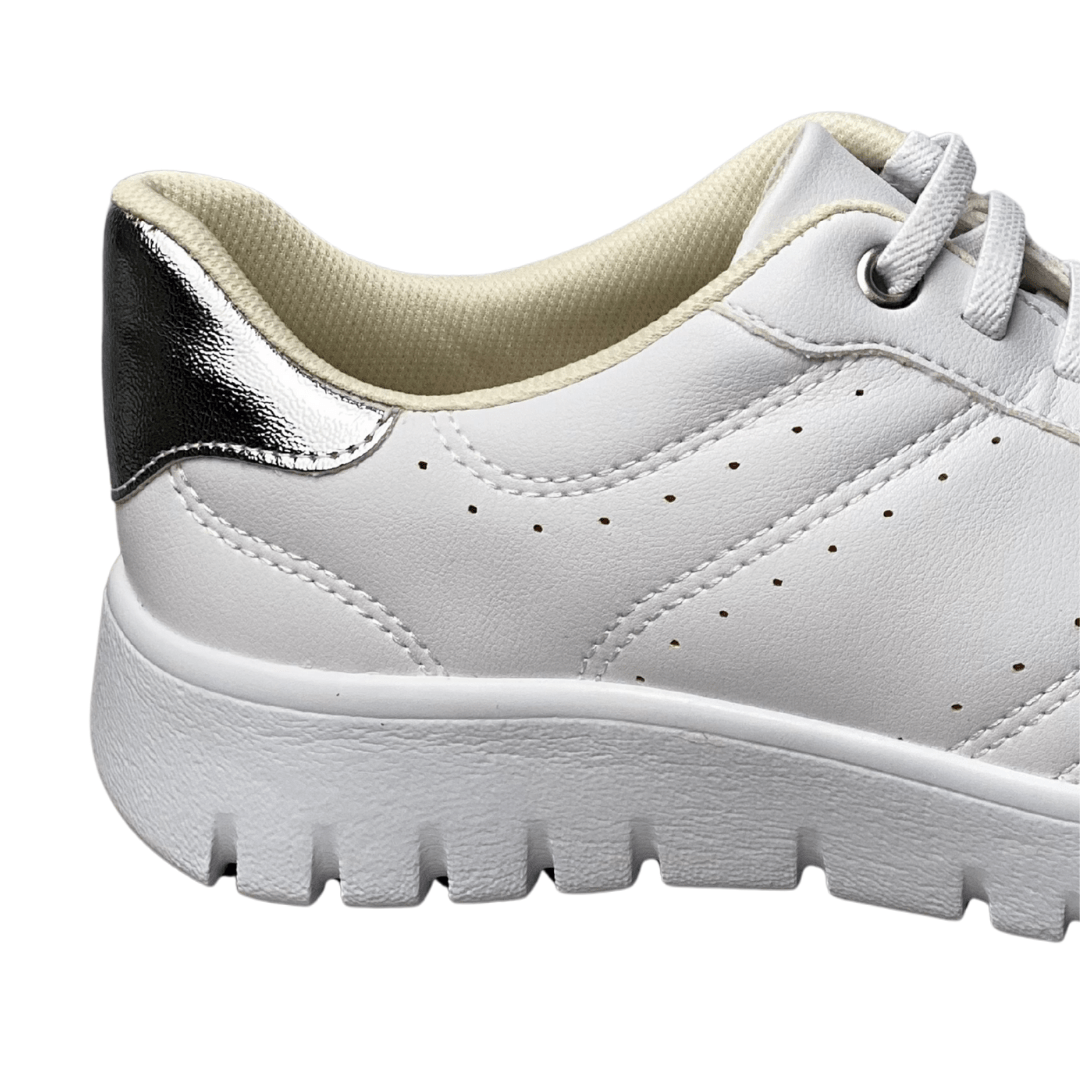 | Cor | Branco Neve com detalhe prata no calcanhar |