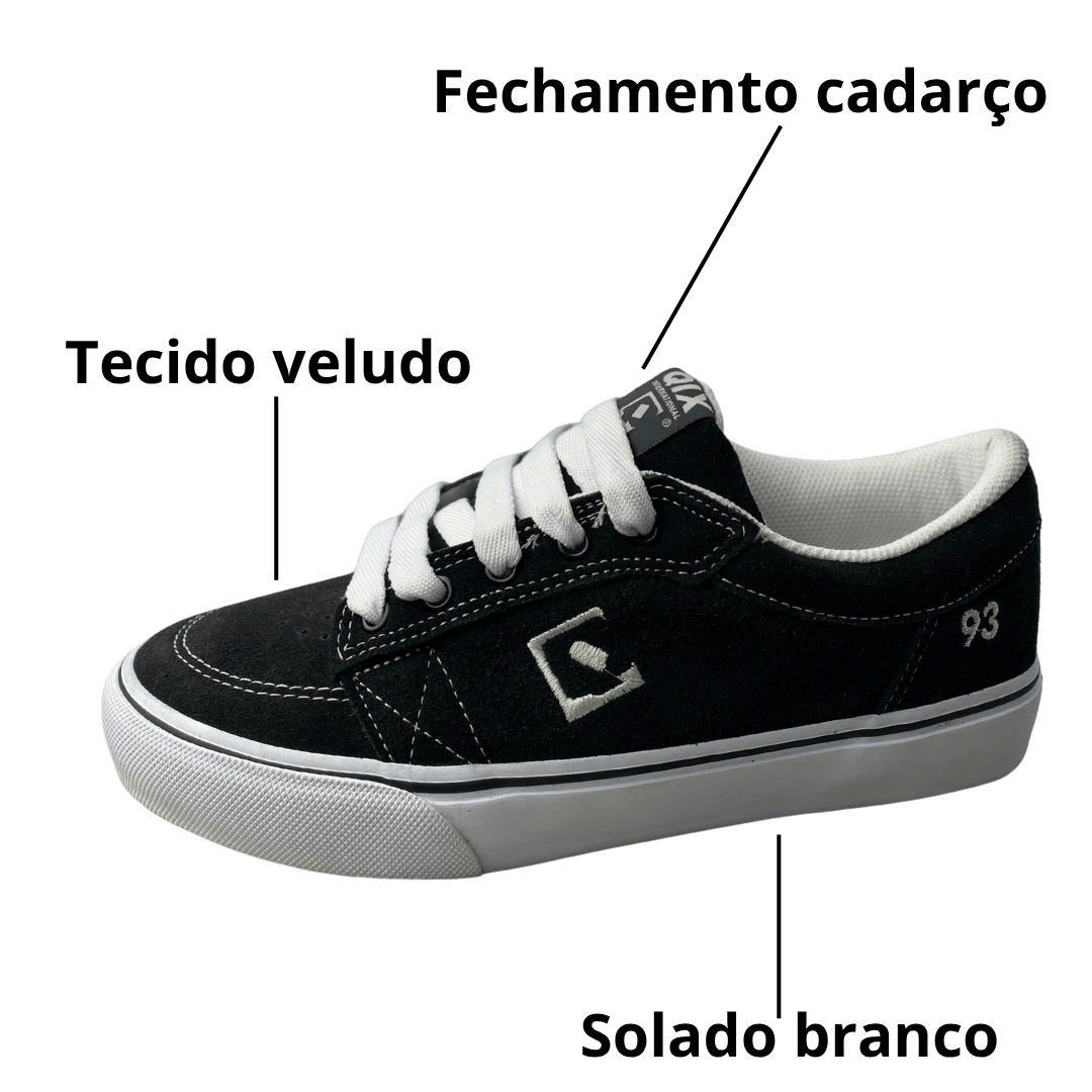 Modelo: Ninety Three – linha clássica da Qix, referência no universo do skate e moda urbana.