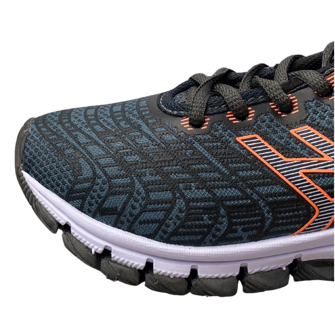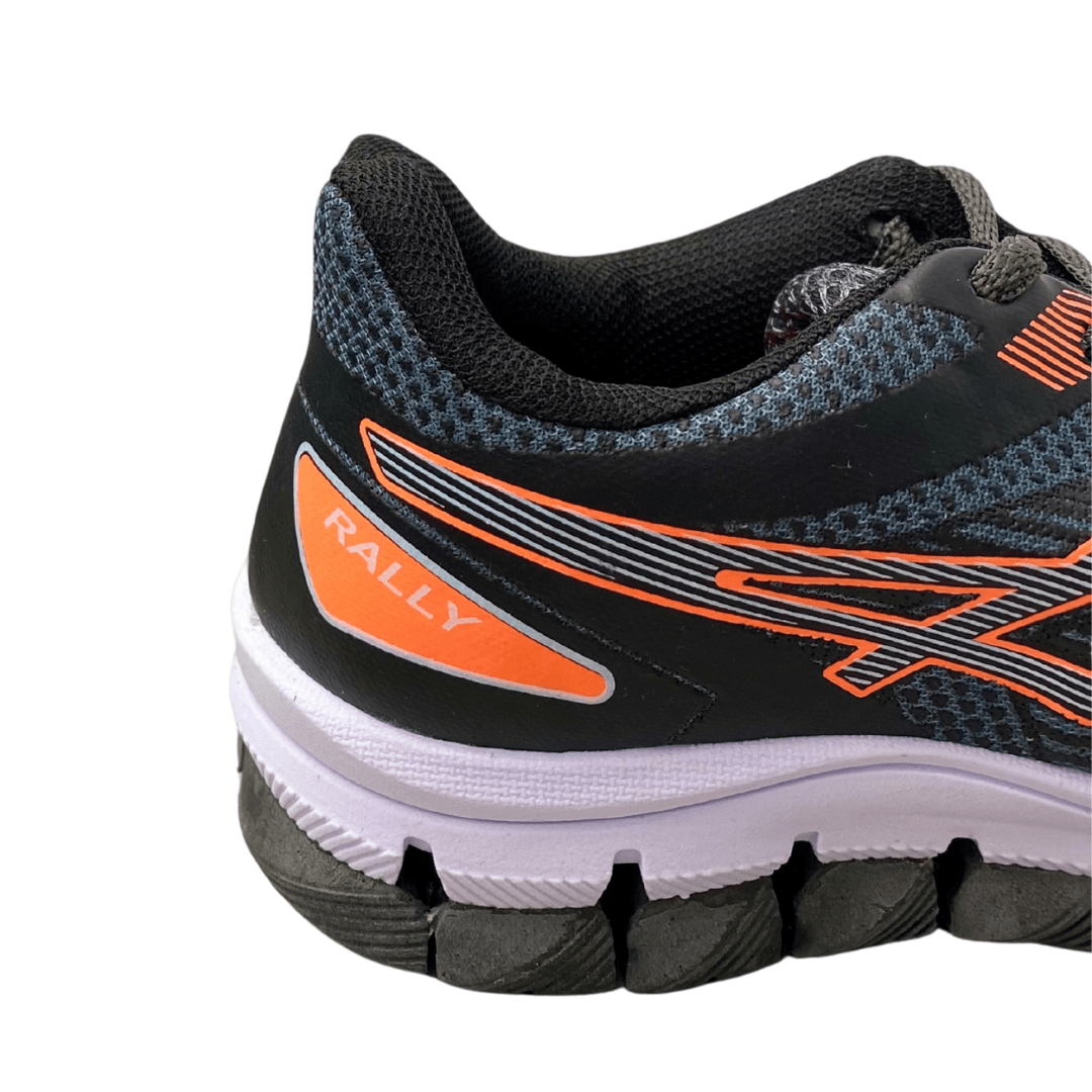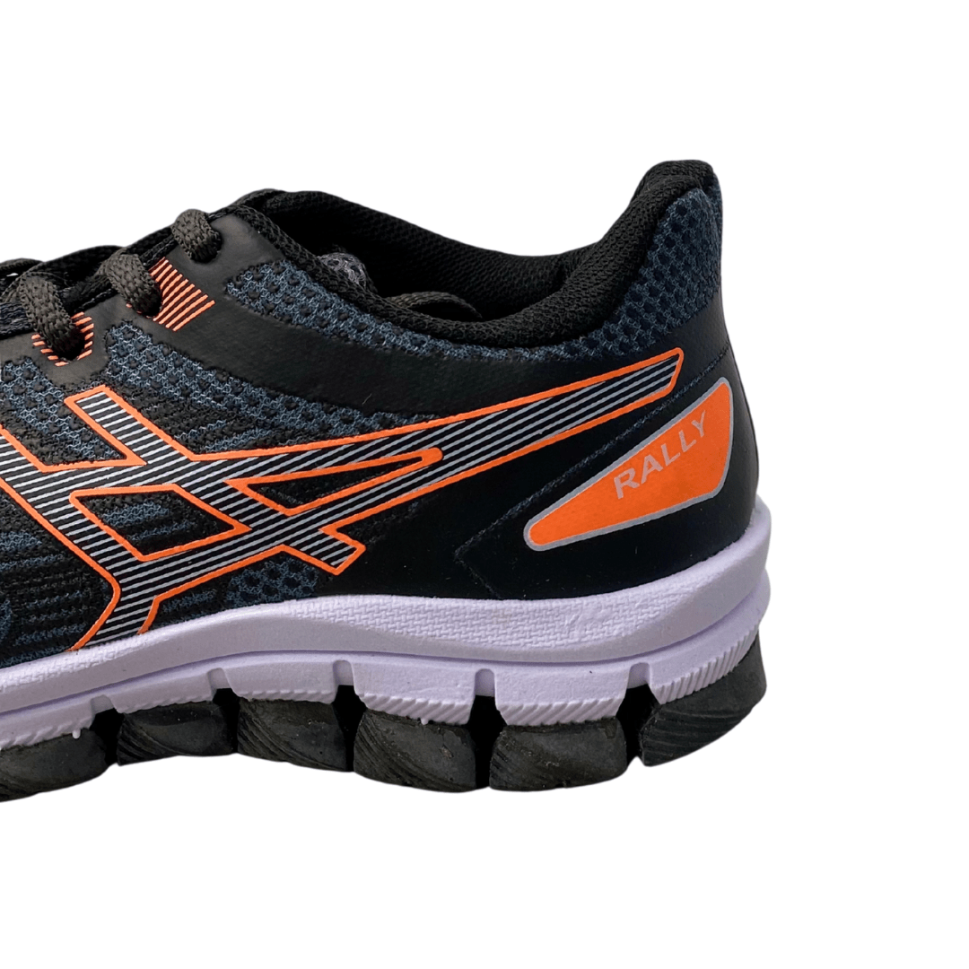 Cor: Grafite com detalhes em laranja e sola branca com entressola amortecida.
