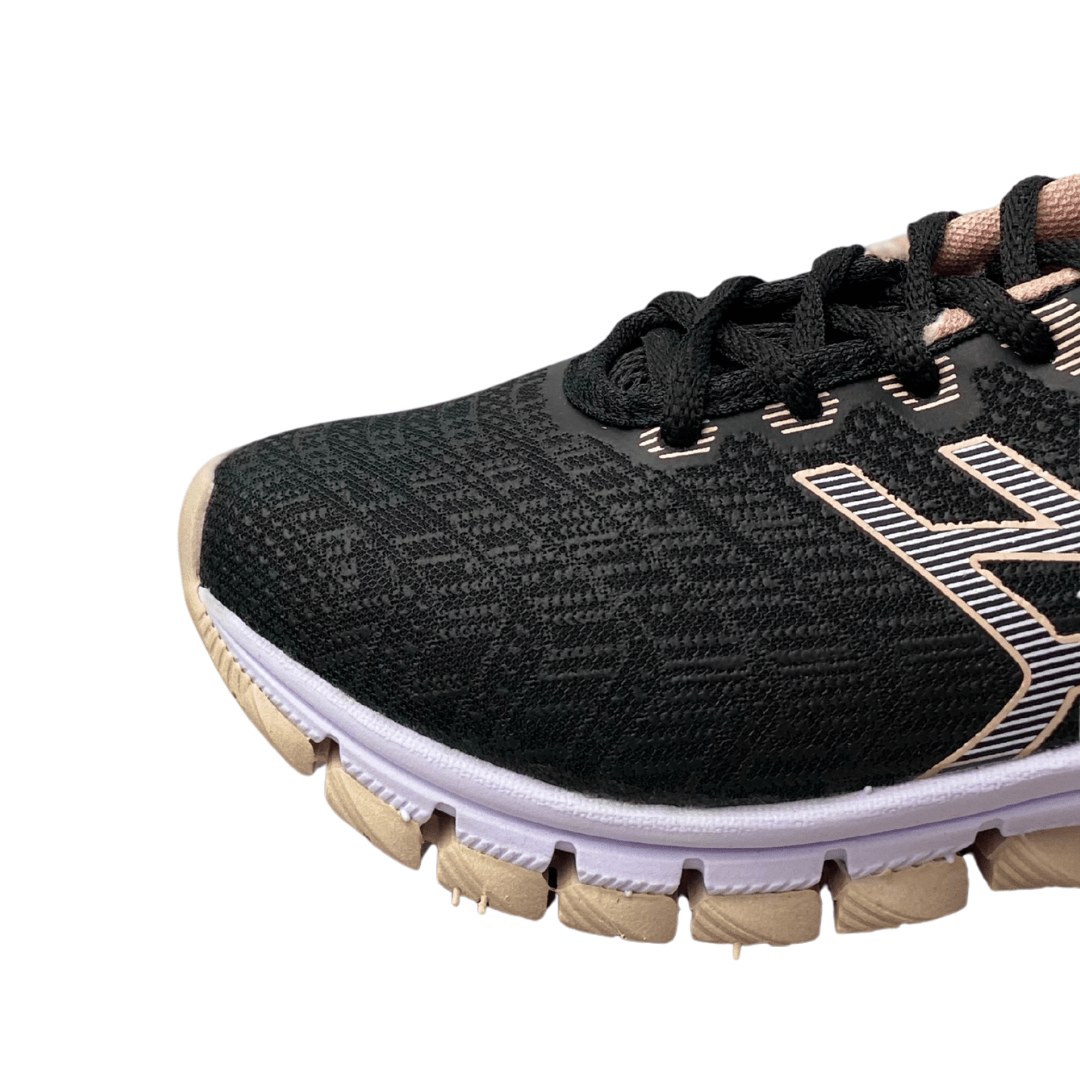 Cor: Preto com detalhes em nude e sola branca com entressola amortecida.