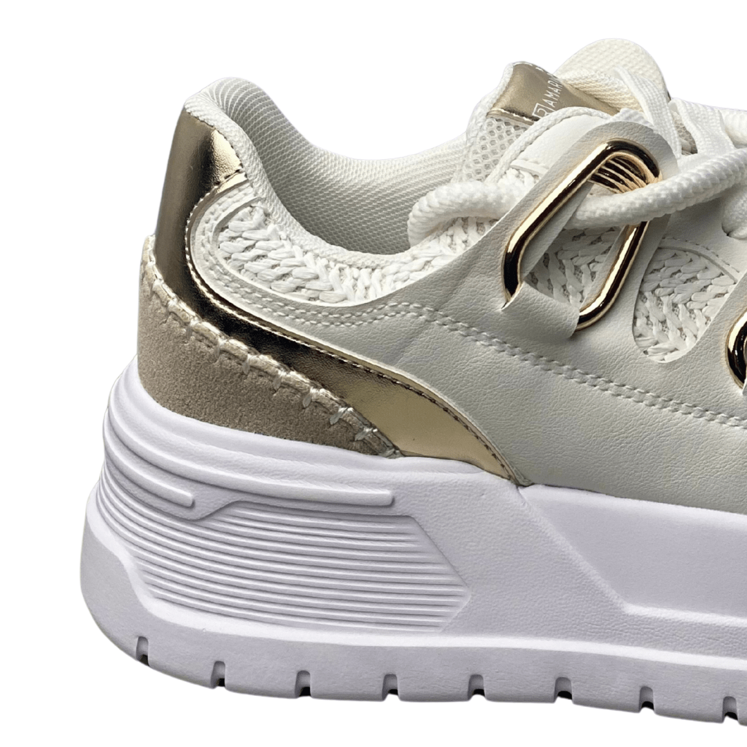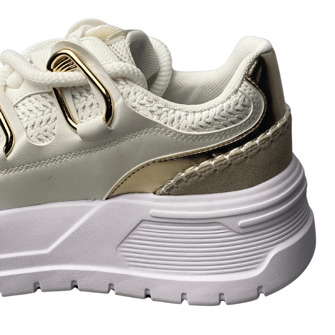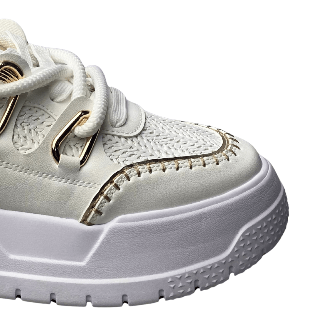 Fechamento: Cadarço branco reforçado para melhor ajuste.