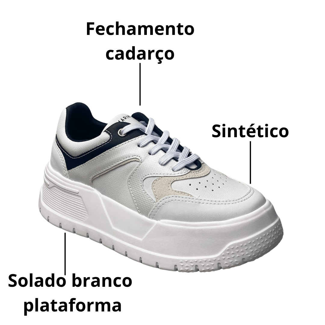 Fechamento: Cadarço branco reforçado para ajuste perfeito.