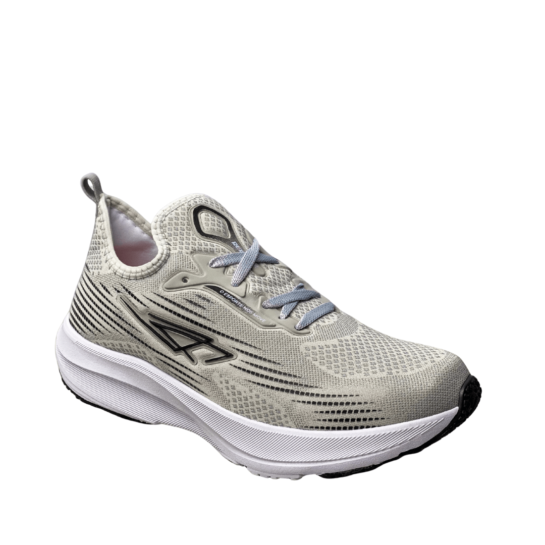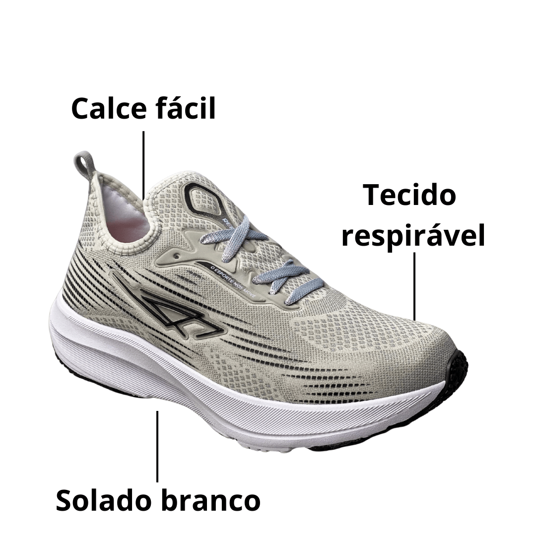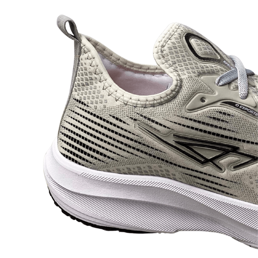 Estilo Moderno e Neutro: A cor Cinza Claro e o design esportivo com linhas contrastantes conferem um visual sofisticado e fácil de combinar com qualquer peça casual.