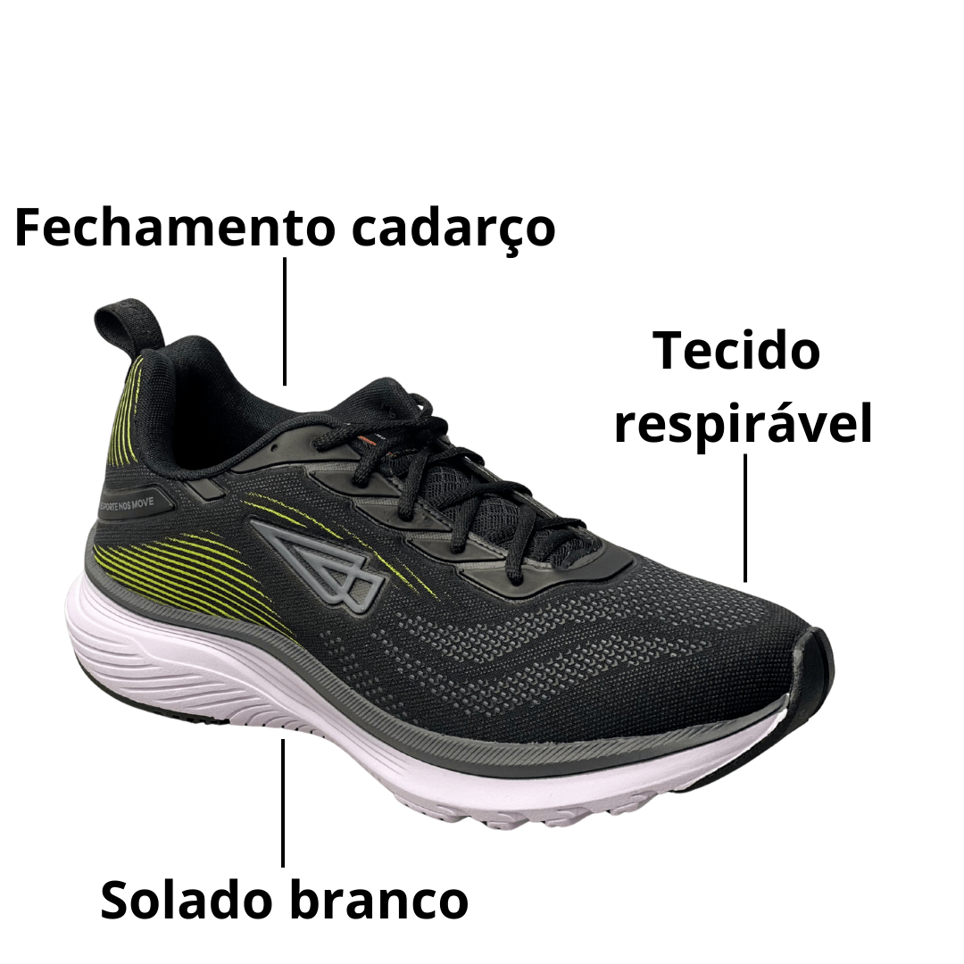 | A cor neon é muito forte? | O verde-limão/neon é usado em detalhes estratégicos para dar um toque moderno e garantir um visual impactante, mas a maior parte do tênis é preto. |