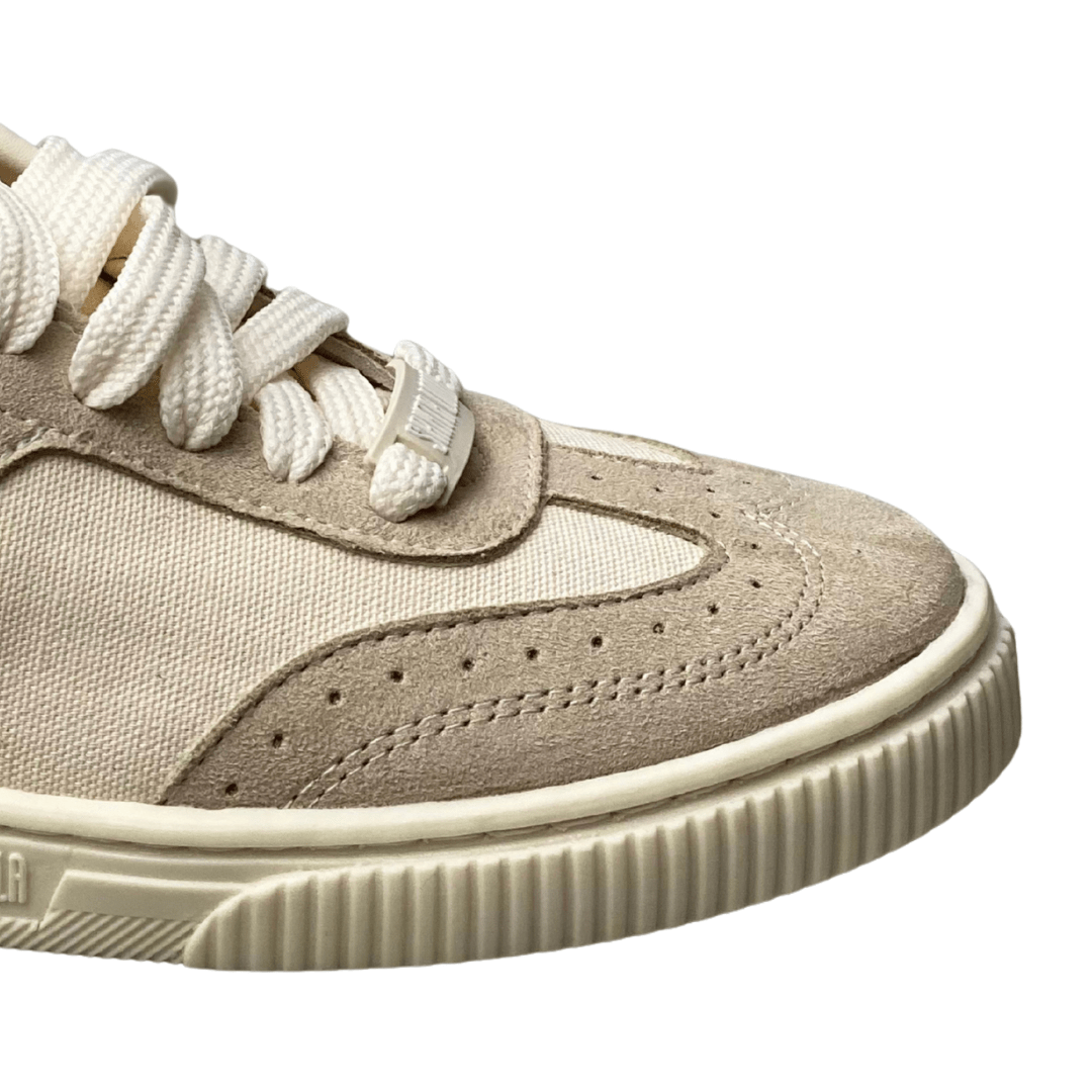 Design Vintage na Moda: O formato clássico com solado gum e o bico em suede cinza claro remetem aos modelos esportivos retrô, combinando o esporte com a elegância urbana.
