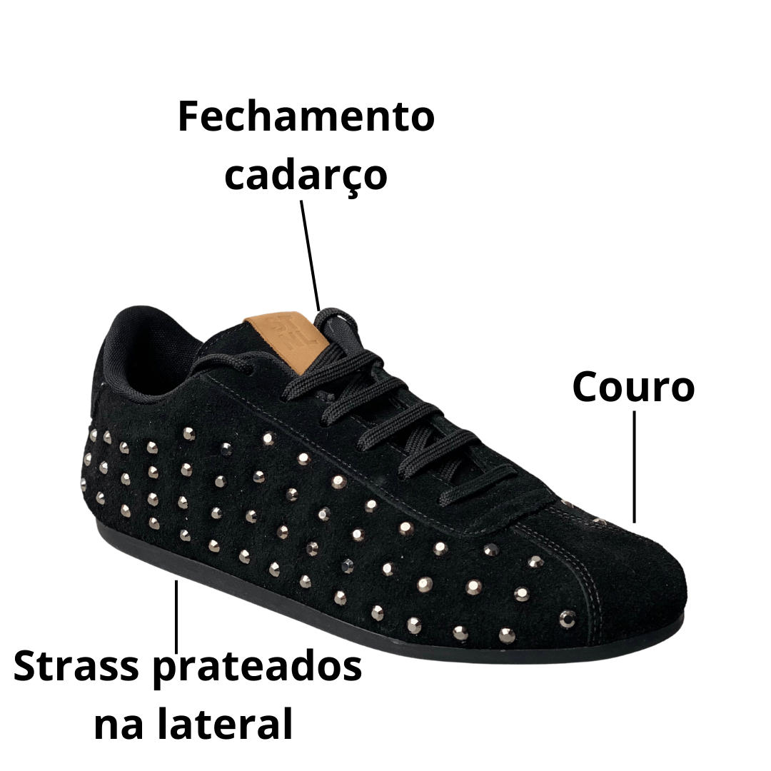 Tênis Santinelli Feminino Couro Preto com Cristais