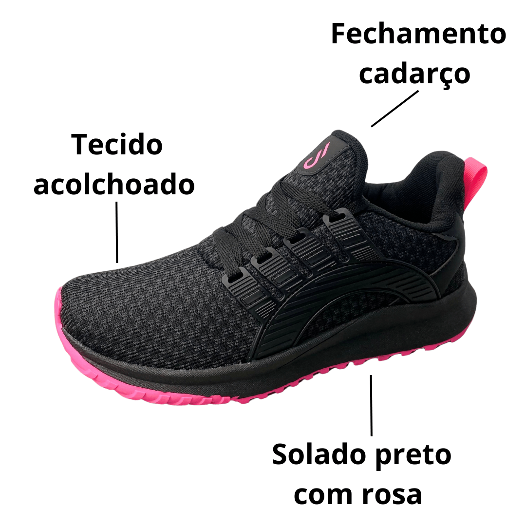 Tênis Spark Feminino Preto Fechamento Cadarço