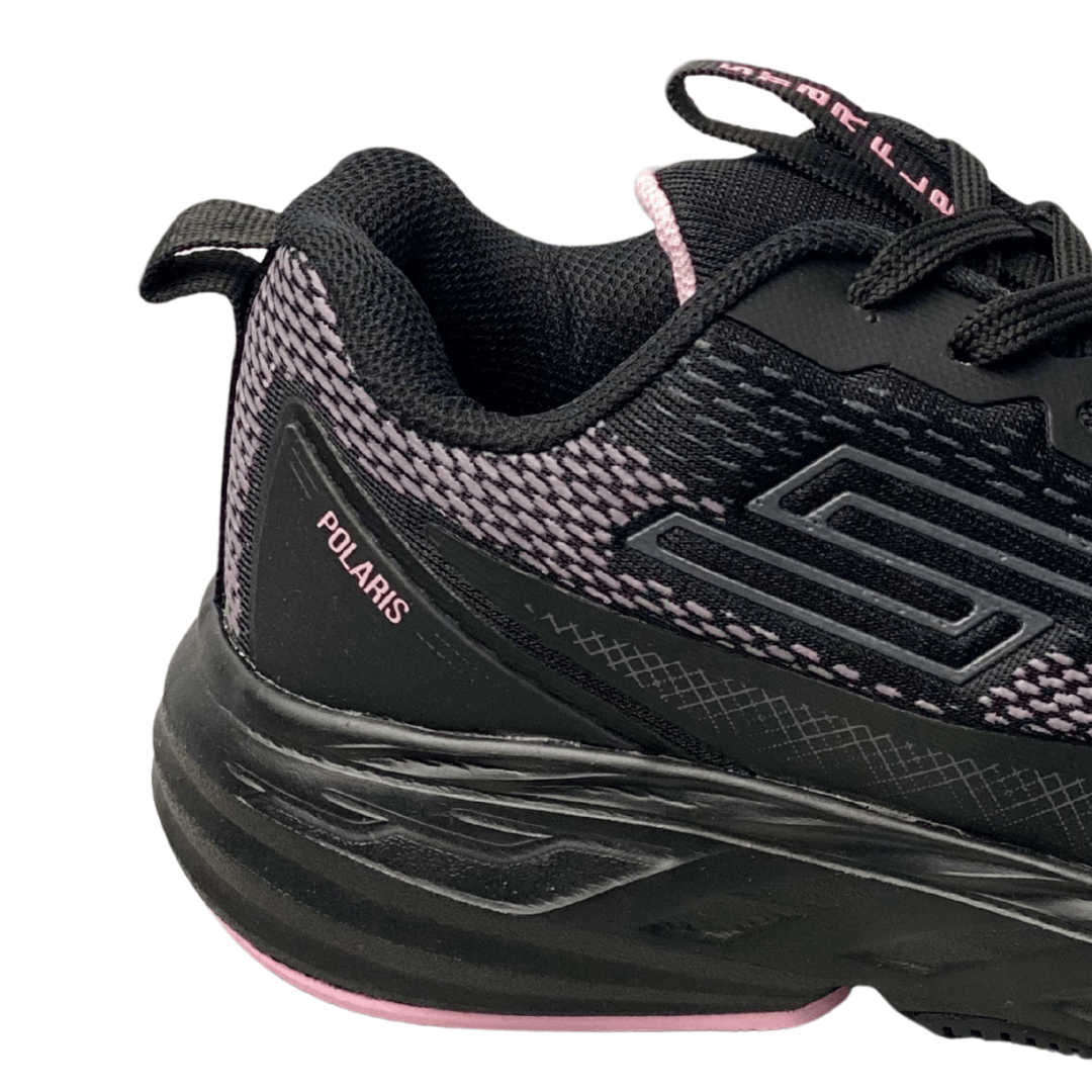 Estilo Esportivo Elegante: A cor preta é clássica e versátil, enquanto o design robusto e os detalhes em rosa dão um toque moderno e feminino ao visual esportivo.