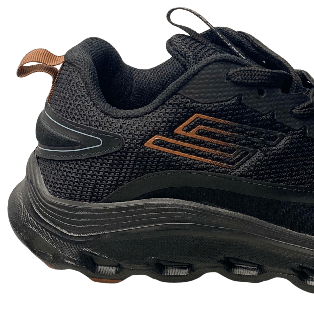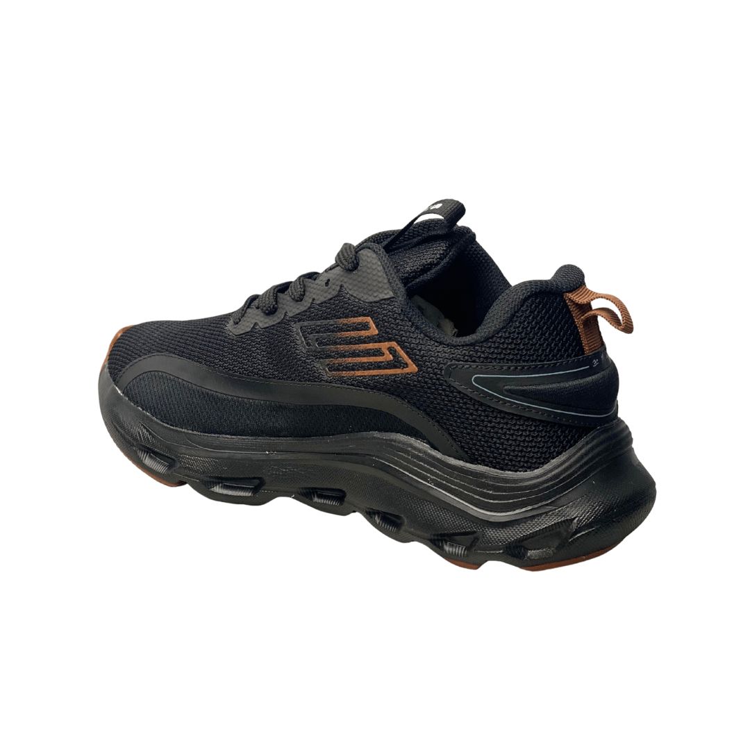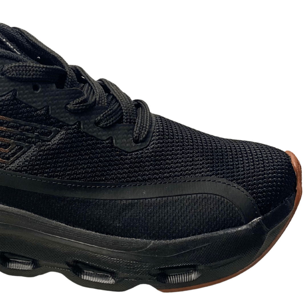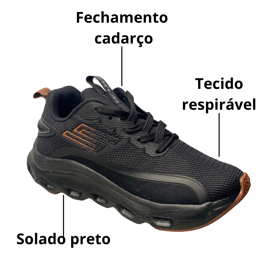 Design Discreto e Versátil: A cor Preto Total (All Black), com solado e cabedal na mesma tonalidade, oferece uma estética elegante, moderna e fácil de combinar com qualquer look esportivo ou casual.