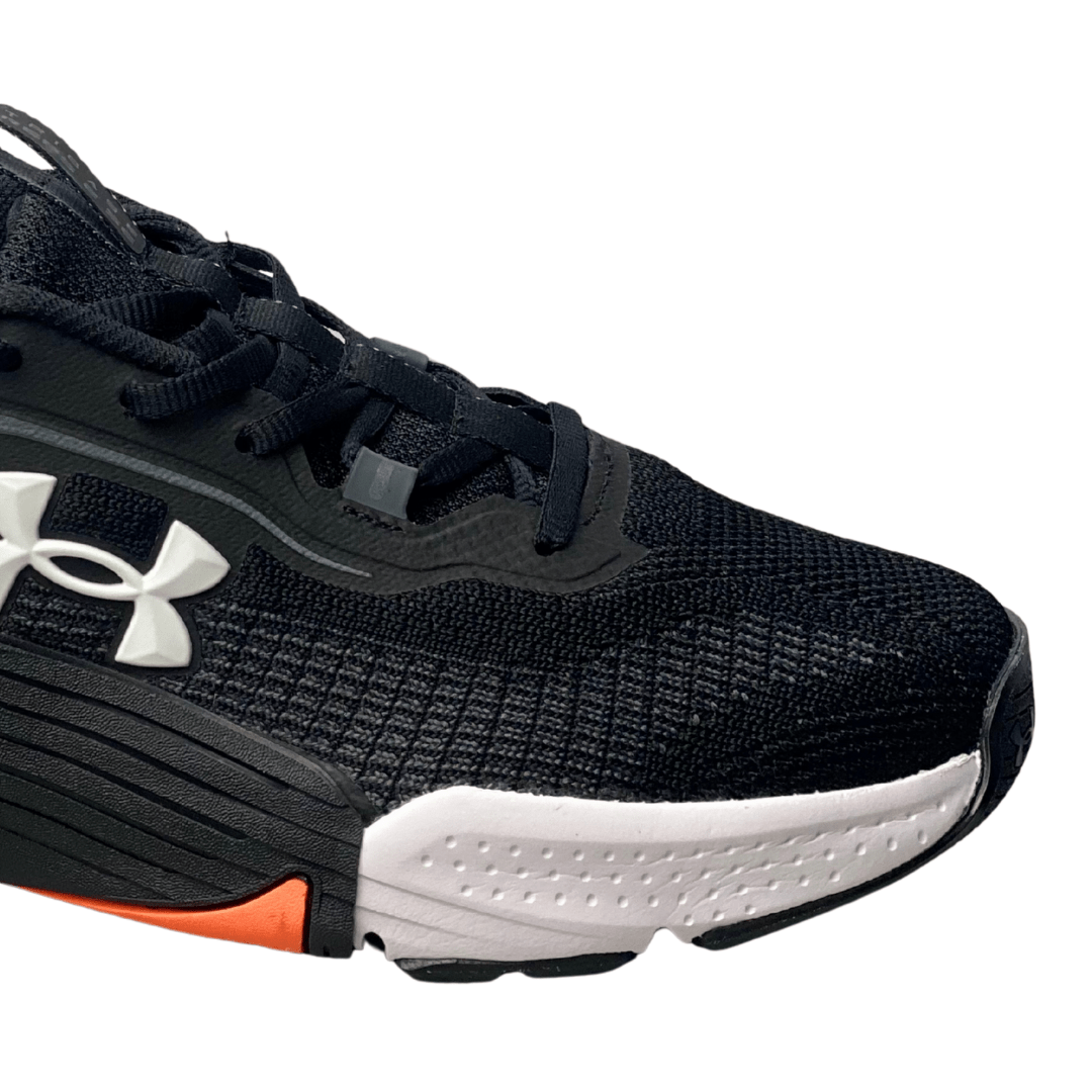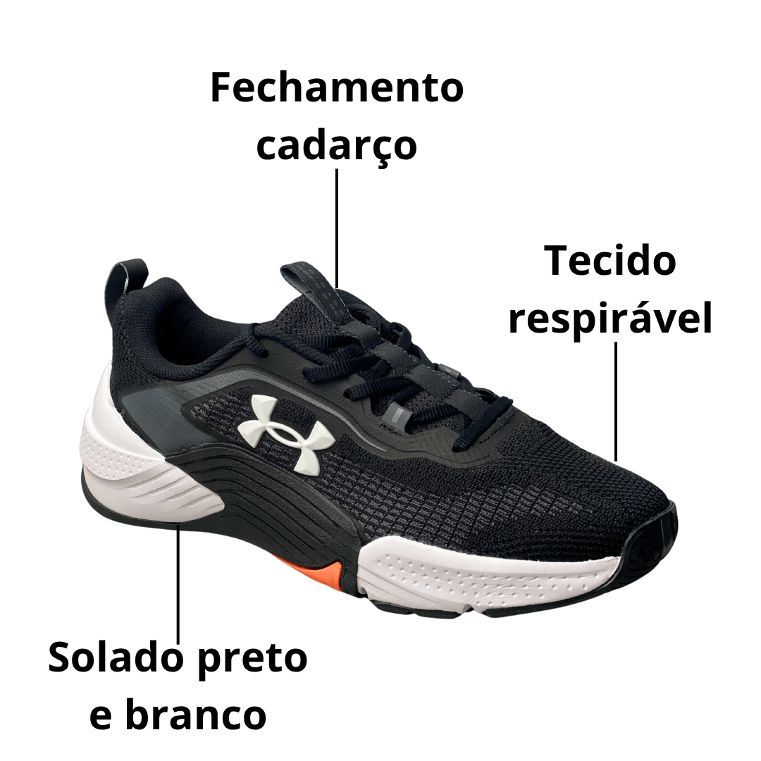 Máxima Estabilidade (Tecnologia TriBase): Projetado com a tecnologia UA TriBase™ no solado, que maximiza o contato com o chão em três pontos de apoio, oferecendo estabilidade superior para levantamento de peso e movimentos laterais intensos.
