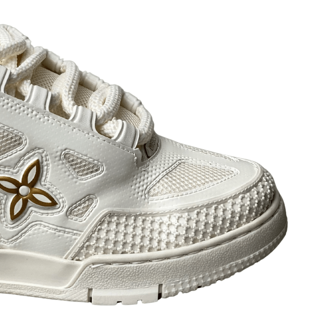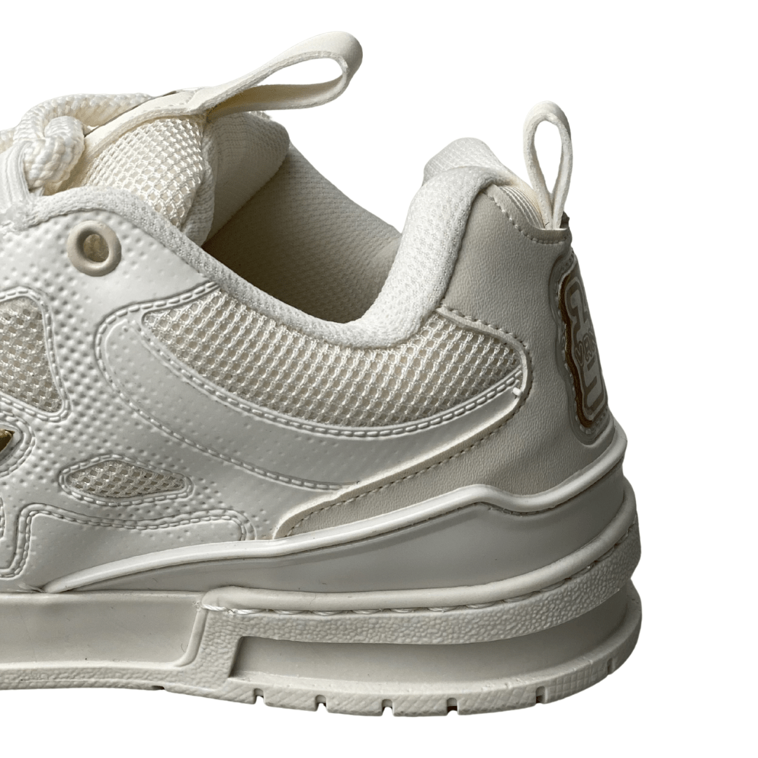 Limpeza: Para preservar as texturas e o tom Off White, utilize uma escova de cerdas macias e pano levemente úmido, evitando mergulhar o calçado em água.