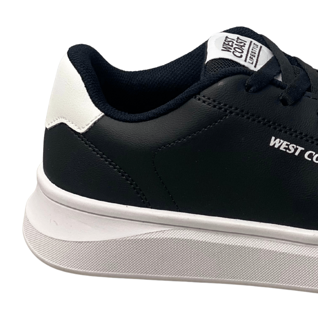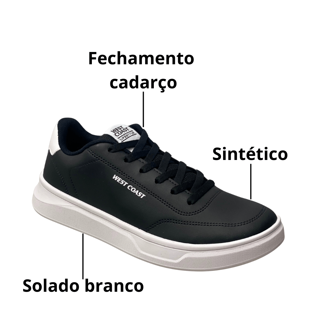 Tênis West Coast Masculino Preto e Branco Casual com Cadarço