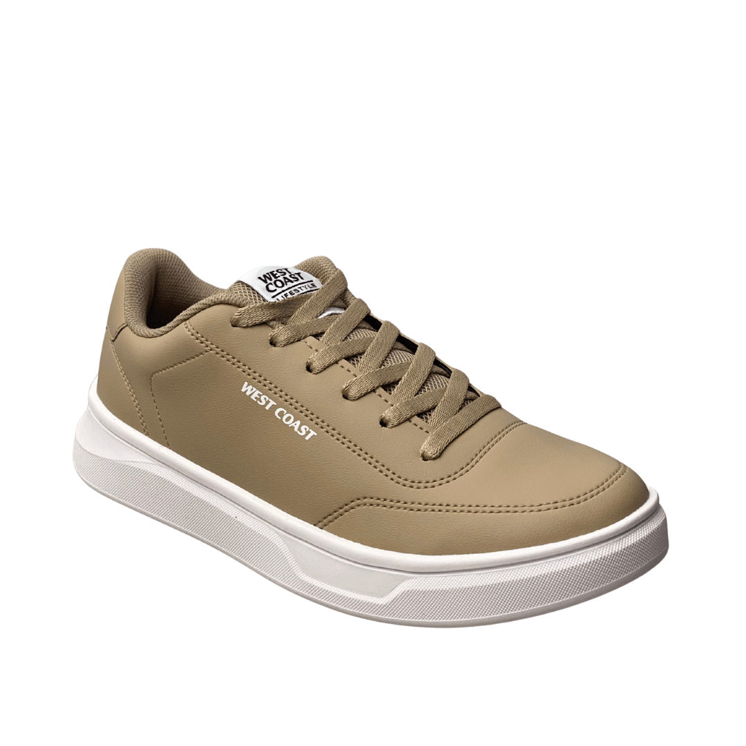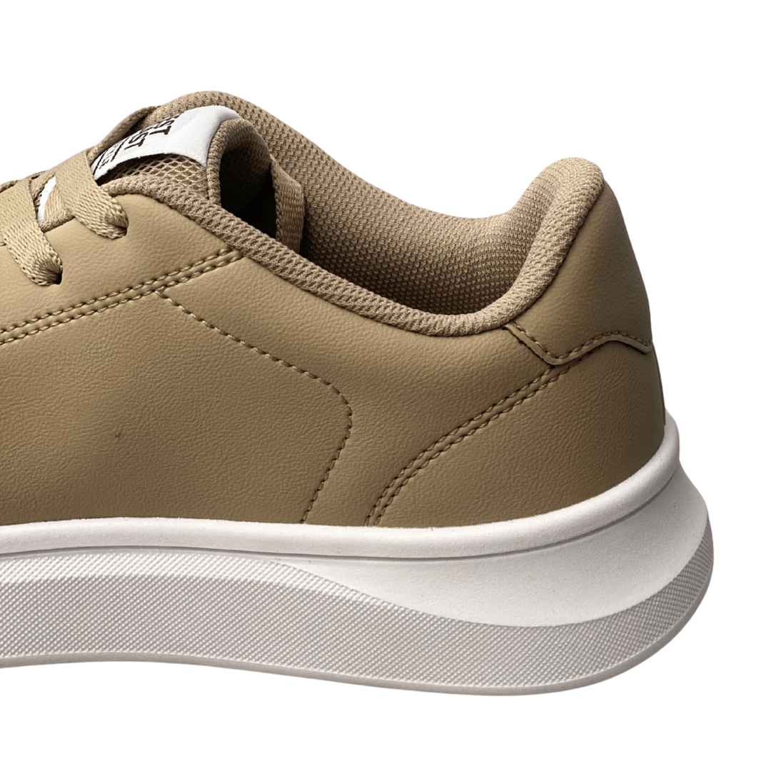 Estilo Clean e Atemporal: O design clássico de tênis de quadra (court) em uma cor neutra e elegante (Sand/Cáqui) garante um visual que nunca sai de moda.